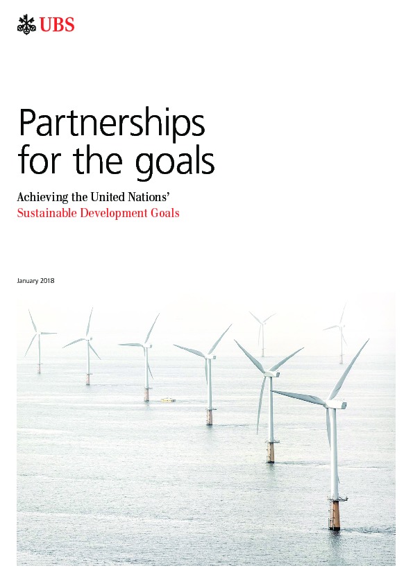 The United Nations’ Sustainable Development Goals (SDGs) provide a roadmap to solve our common sustainability challenges and the seventeenth SDG is Partnerships for the Goals. In this white paper, UBS explores how specific types of partnerships can achieve the SDGs. We also invite others to join us in creating a more sustainable world together.