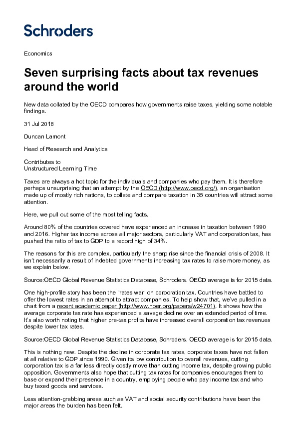 Taxes are always a hot topic for the individuals and companies who pay them. It is therefore perhaps unsurprising that an attempt by the OECD (http://www.oecd.org/), an organisation made up of mostly rich nations, to collate and compare taxation in 35 countries will attract some attention.
