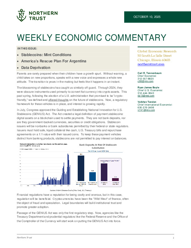 Stablecoins Mature, Argentina Stabilizes, and U.S. Data Gaps Complicate Policy