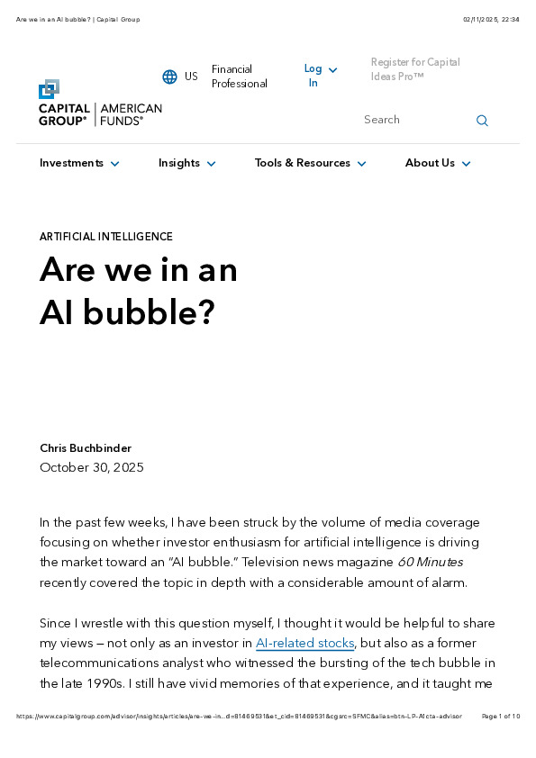 This report by Capital Group portfolio manager Chris Buchbinder examines whether current investor enthusiasm signals an AI bubble or an early-stage boom.