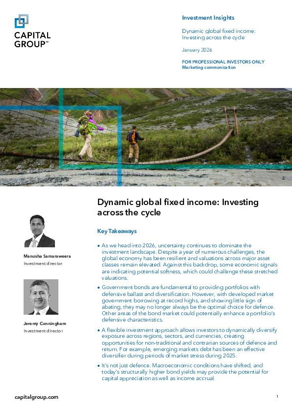 A Capital Group Investment Insights note by Manusha Samaraweera and Jeremy Cunningham explains why dynamic global fixed income can strengthen portfolio defence and returns as 2026 uncertainty meets stretched valuations.