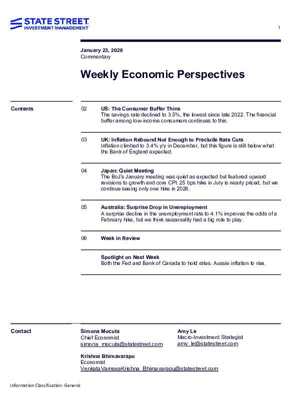 State Street Investment Management’s Weekly Economic Perspectives (Simona Mocuta, Amy Le and Krishna Bhimavarapu) highlights where macro risks are shifting as 2026 begins.