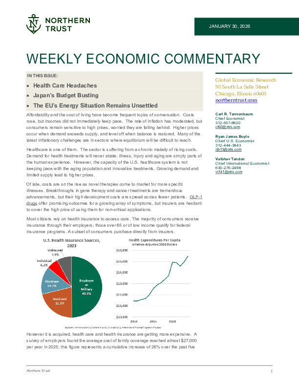 Produced by Northern Trust’s global economics team, this weekly commentary examines how persistent supply constraints are reshaping inflation dynamics, fiscal risk, and energy security.