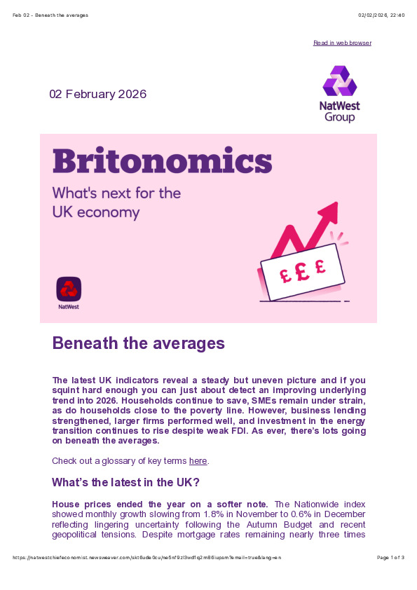 Authored by NatWest’s chief economics team, this February briefing examines how headline stability in the UK masks widening divergences across households, firms, and capital flows.