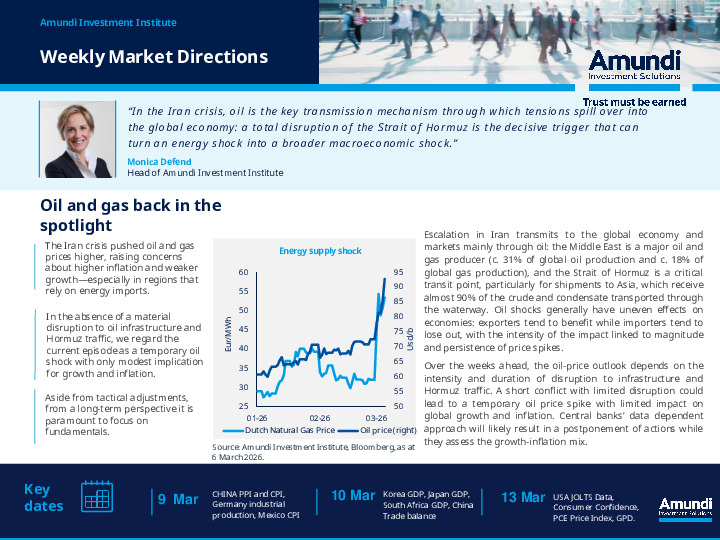 Amundi’s weekly market note examines how escalating tensions around Iran are influencing global markets, primarily through the energy channel.