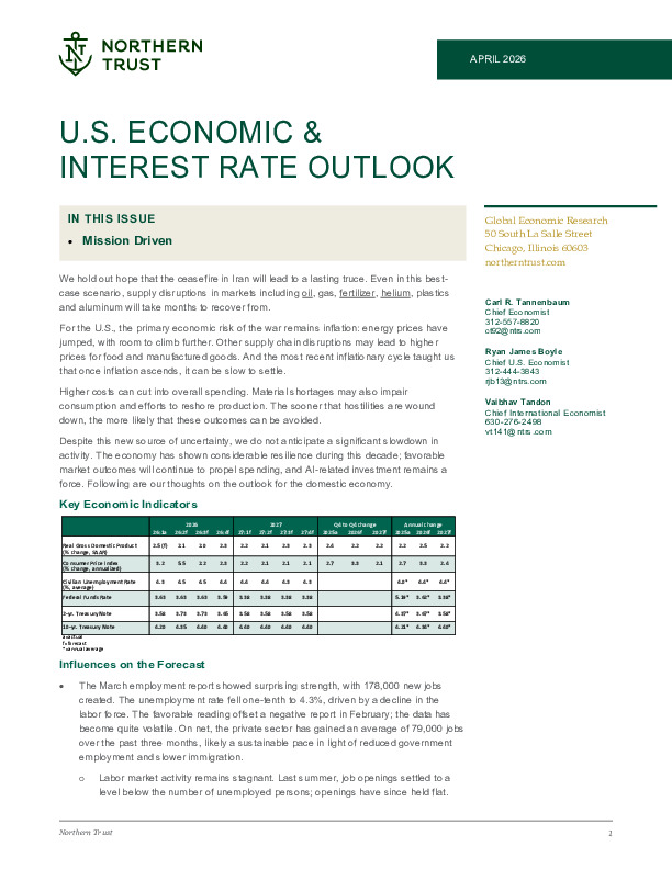 Northern Trust’s April outlook says the main economic threat from the Iran conflict is not recession, but a renewed inflation pulse through energy and disrupted supply chains.