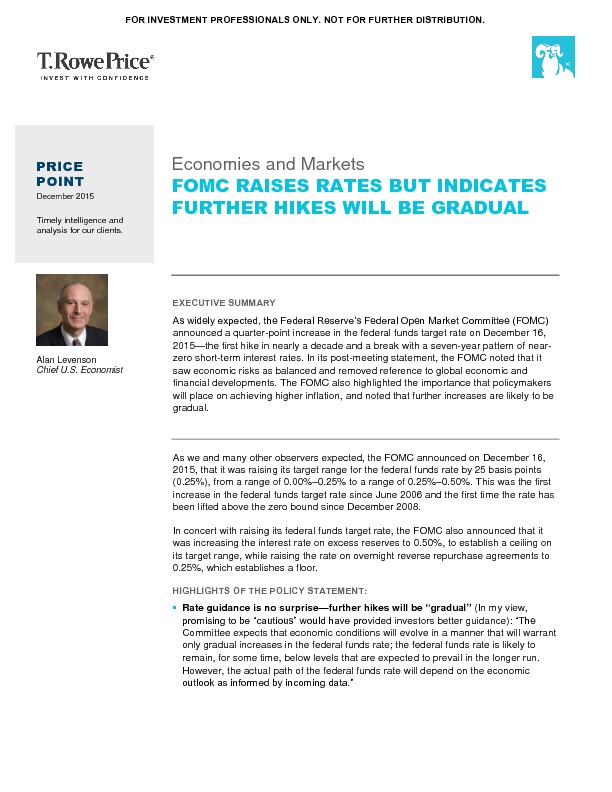 TRP - Economies and Markets: FOMC Raises Rates but Indicates Further Hikes Will be Gradual