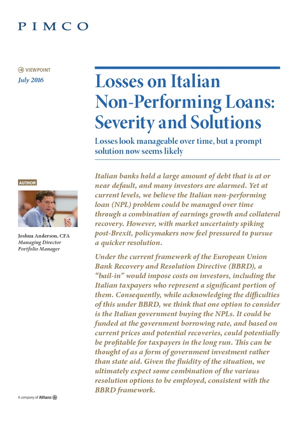 Pimco - Viewpoint: Losses on Italian Non-Performing Loans: Severity and Solutions