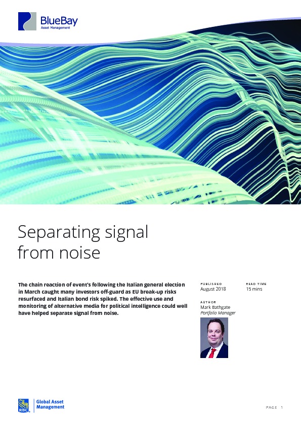 The chain reaction of event’s following the Italian general election in March caught many investors off-guard as EU break-up risks resurfaced and Italian bond risk spiked. The effective use and monitoring of alternative media for political intelligence could well have helped separate signal from noise.