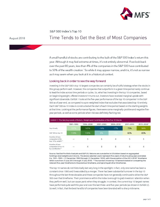 A small handful of stocks are contributing to the bulk of the S&P 500 Index’s return this year. Although it may feel extreme at times, it’s not entirely abnormal. If we look back over the past 80 years, less than 4% of the companies in the S&P 500 have contributed to 50% of the wealth creation. So while it may appear narrow, and it is, it’s not as narrow as it may seem when you look at it in a historical context.