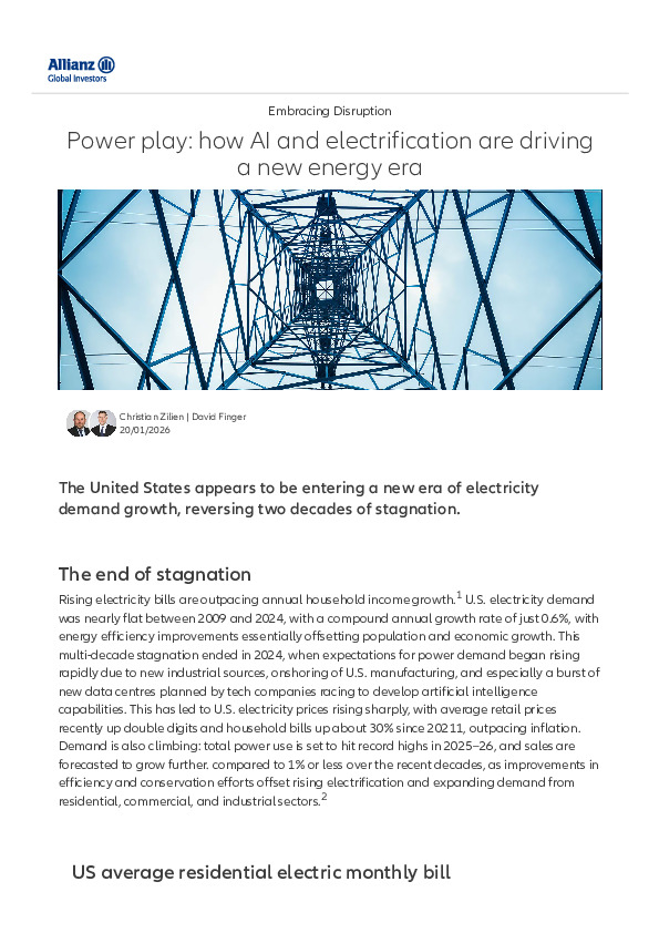 This Allianz Global Investors Thematic Pulse by Christian Zilien and David Finger explains how AI data centres and electrification are driving a structural upswing in electricity demand and infrastructure spending.