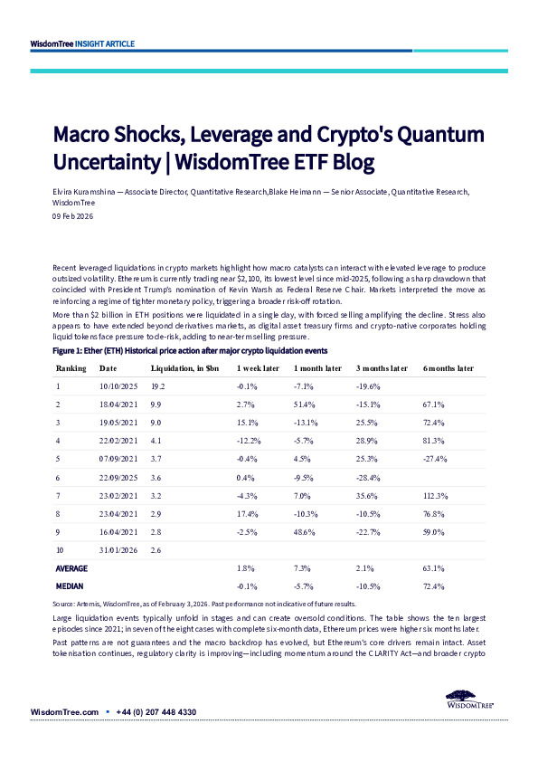 In this WisdomTree research note, Elvira Kuramshina and Blake Heimann examine how macro shocks, leverage, and emerging quantum threats are reshaping crypto’s risk profile