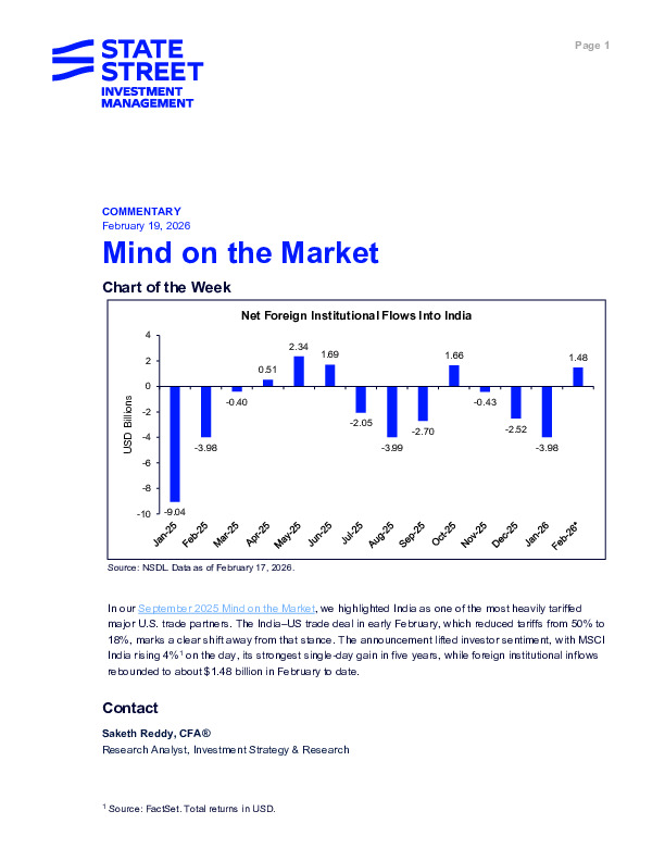 State Street Investment Management’s Mind on the Market reviews India’s tariff reprieve and the structural inflection in its IT sector