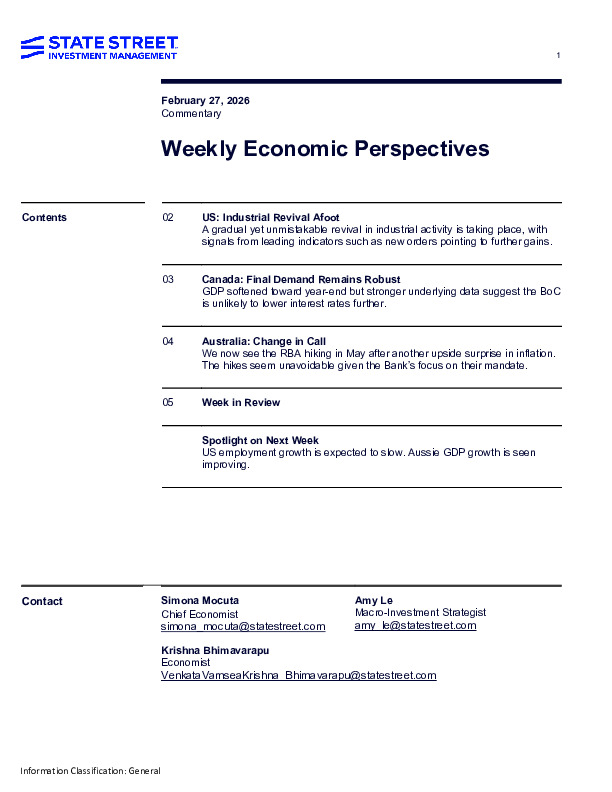 State Street Investment Management’s Weekly Economic Perspectives notes strengthening U.S. industrial momentum alongside shifting policy signals globally