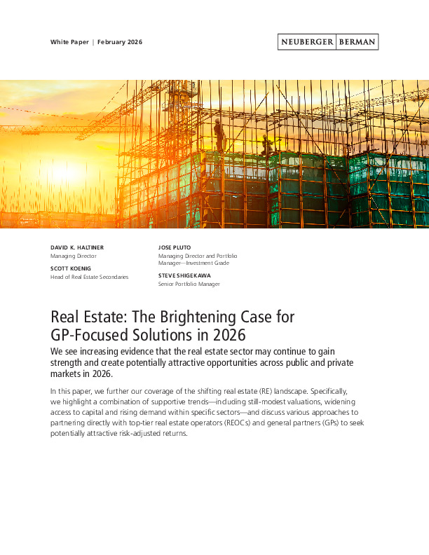 Neuberger Berman highlights how a 13% drawdown in real estate values since 2022, combined with thawing debt markets, is opening a window for GP-focused capital solutions