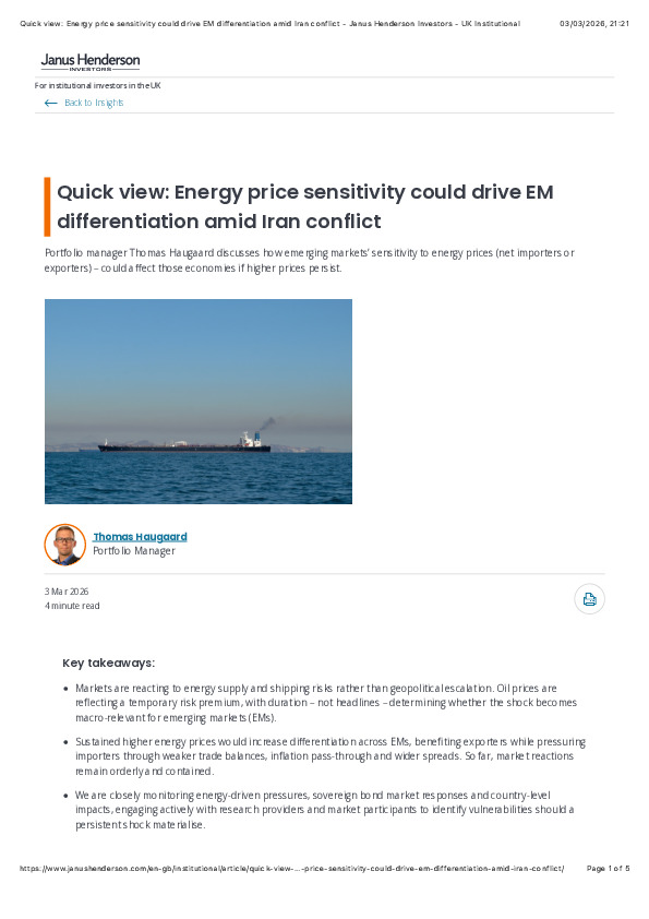 Janus Henderson contends that oil price persistence—not headlines—will determine whether Middle East tensions become macro-relevant for emerging markets.