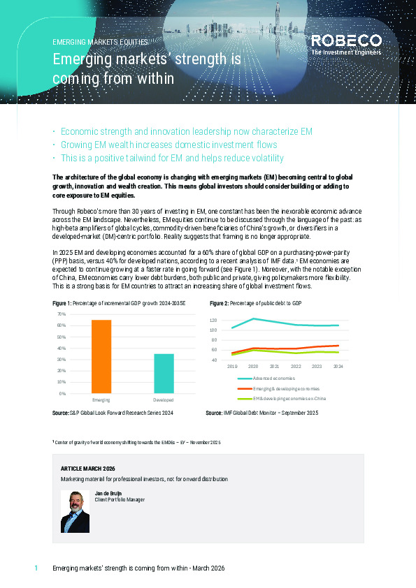 Robeco argues that emerging markets are no longer high-beta satellites but increasingly self-sustaining growth engines, supported by innovation leadership and domestic capital formation