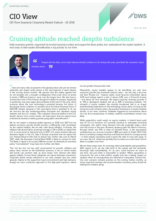 DWS’s quarterly outlook assesses global markets against a backdrop of resilient growth, moderate inflation and cautious central bank policy.