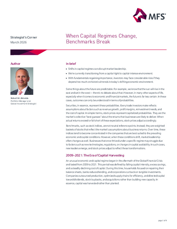 MFS argues that markets are transitioning from a capital-light to a capital-intensive regime, with significant implications for asset allocation and index construction.