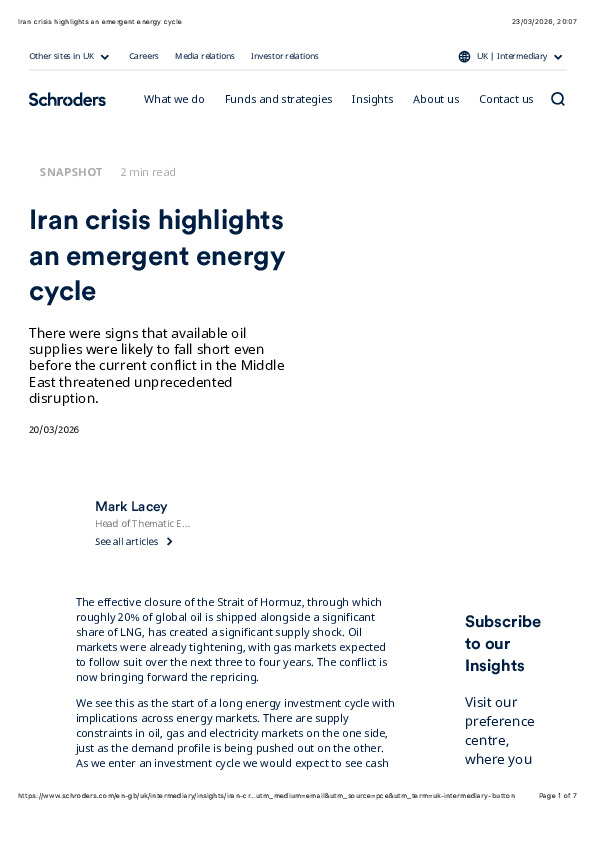 Schroders argues that the Iran crisis is accelerating a structural shift already underway in global energy markets.