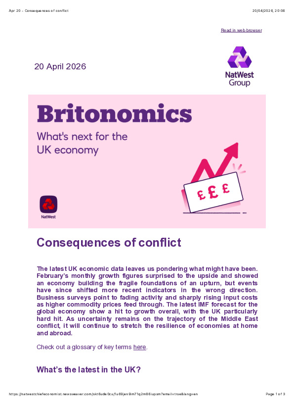 NatWest’s latest UK macro note argues Britain had begun to build a fragile recovery, but the Middle East conflict has reversed sentiment and revived inflation pressure before momentum could fully take hold.